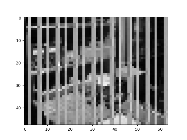 Python to the rescue: I wrote a script to read the .411 file. Taking the raw byte stream and putting it into an array was easy enough, but now came the issue of byte packing (where your relevant data lives in a file). Some assumptions that were also clear is that the .411 file is always exactly 4608 bytes long, with the resulting thumbnail being 64 by 48 pixels. Since it is a RAW file, no metadata is included and every byte contributes to the image. The issue is that for 411 subsampling, 2/3rds of the file is dedicated to luminance whilst the remaining 1/3rd is color information. Having written a function that subdivides the data into two arrays according to the 411P packing, the resulting luminance image turned out to look like this: